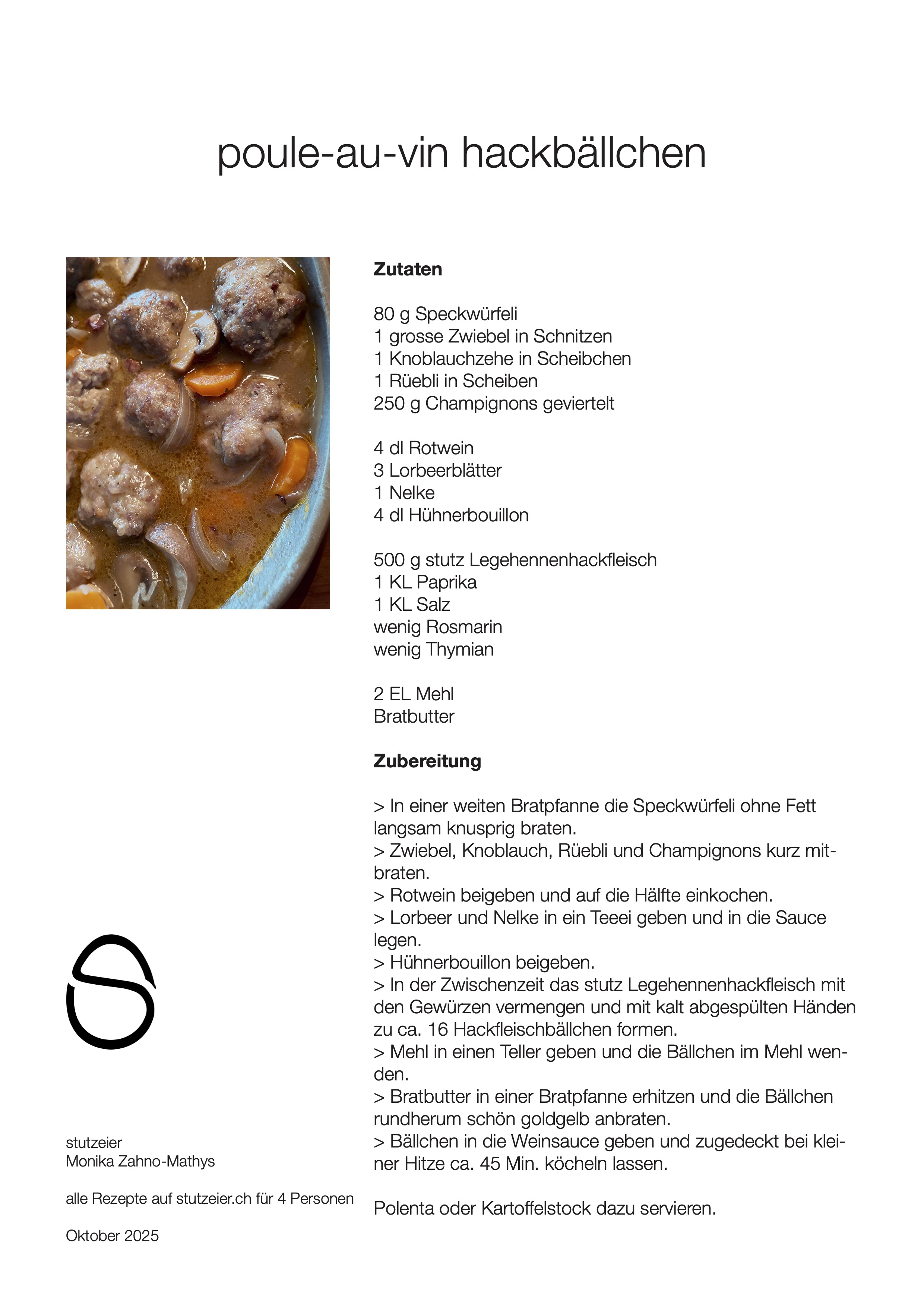 > Bällchen in die Weinsauce geben und zugedeckt bei kleiner Hitze ca. 45 Min. köcheln lassen.